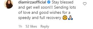 प्रशंसकों और शुभचिंतकों ने टिप्पणी अनुभाग में ले लिया और अभिनेता के स्वास्थ्य पर अपनी चिंता व्यक्त की। उद्योग के सहयोगी दीया मिर्जा ने भी उनके शीघ्र स्वस्थ होने की कामना की। “धन्य हो और जल्द स्वस्थ हो जाओ !!! एक त्वरित और पूर्ण पुनर्प्राप्ति के लिए बहुत सारा प्यार और शुभकामनाएं भेजना “उसकी टिप्पणी पढ़ें।