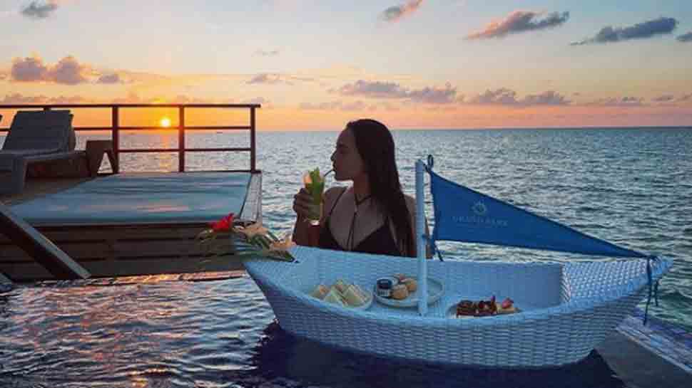 मुंबई: अभिनेत्री सोनाक्षी सिन्हा ने स्मृति लेन का दौरा किया और मालदीव के लिए अपने अवकाश की स्मृति पर दोबारा गौर किया। अभिनेत्री ने अपनी मालदीव की छुट्टी से इंस्टाग्राम पर काले तैराक में खुद की एक जलती हुई फेंकने वाली तस्वीर को गिरा दिया। शेयर की गई तस्वीर में सोनाक्षी ने एक ड्रिंक पर डूबते हुए और सुरम्य सूर्यास्त के खिलाफ इन्फिनिटी पूल में अपने नाश्ते का आनंद लेते हुए देखा