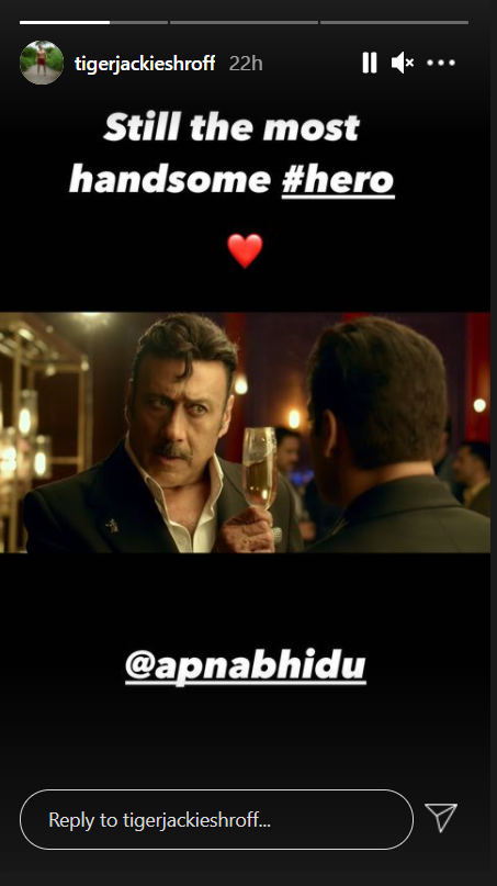 एक इंस्टाग्राम स्टोरी में, टाइगर ने बताया कि जैकी अभी भी कितना सुंदर दिखता है। “अभी भी सबसे सुंदर # हीरो,” टाइगर ने लिखा, जैकी की हिट फिल्म, हीरो (1983) के लिए अलविदा।