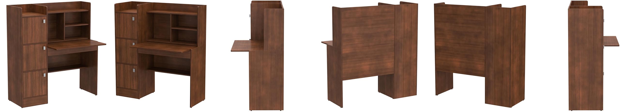 - Has an adjustable top which doubles up as a writing desk & Open shelves and 3 closed cabinets provide plenty of storage space